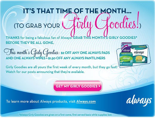 It’s Always once-a-month coupon and sample give away. Visit Always Facebook page now to sign up for yours! You may…
