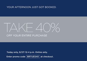 From now until 4 p.m. today, Banana Republic is taking 40% off your entire purchase! Enter promo code BRTUES40 at…
