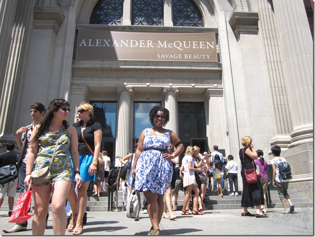 I headed upstairs to the exhibit and there was a huge line. I was recently at the museum last month for the Museum Mile and I remembered that there was a line to see McQueen back then. But if you weren’t trying to go to the exhibit, you could bypass the line and go see the other collections at the museum. So I bypassed the line pretending that I wasn’t there for McQueen and walked right up to the entrance of the exhibit. By that time my friend, Jennifer, was already in the exhibit. I had just missed her by a few seconds.