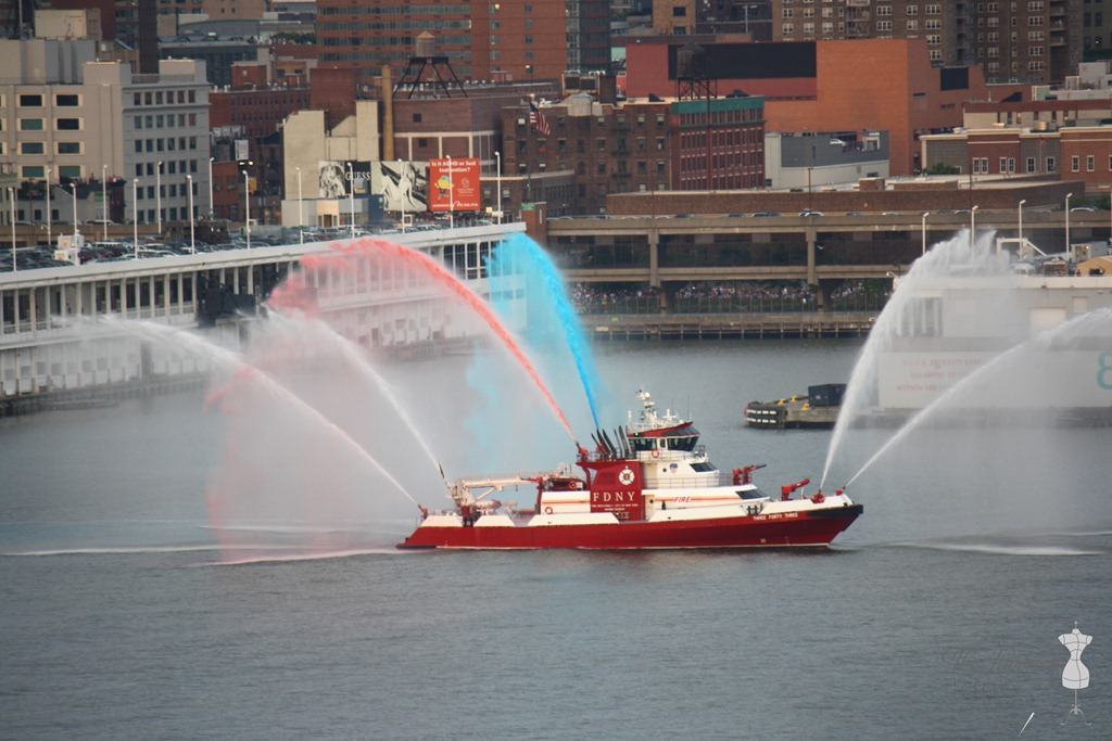 The FDNY came around and sprayed red, white and blue water from their boat.