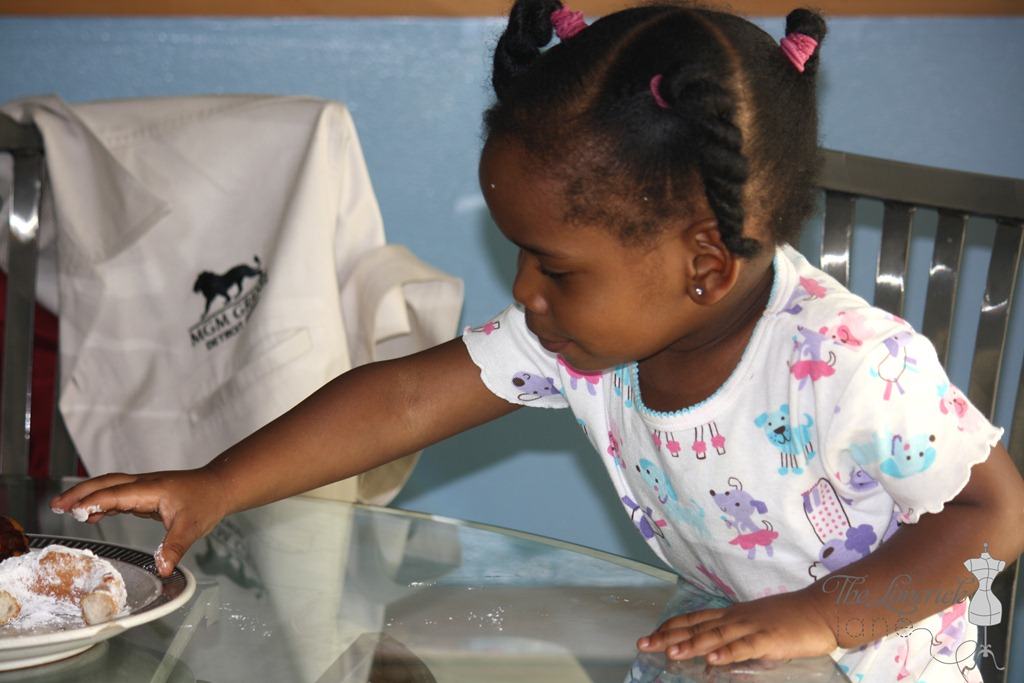 The donuts turned out delicious. The powdered donut tasted just like a New Orleans beignet. My favorite was the vanilla glazed donut. Sasha and Sydney couldn’t wait to show their parents and grandparents what they made. The whole family ate and enjoyed them. Even my mother, who doesn’t have a sweet tooth, liked them. The girls were so proud of themselves.