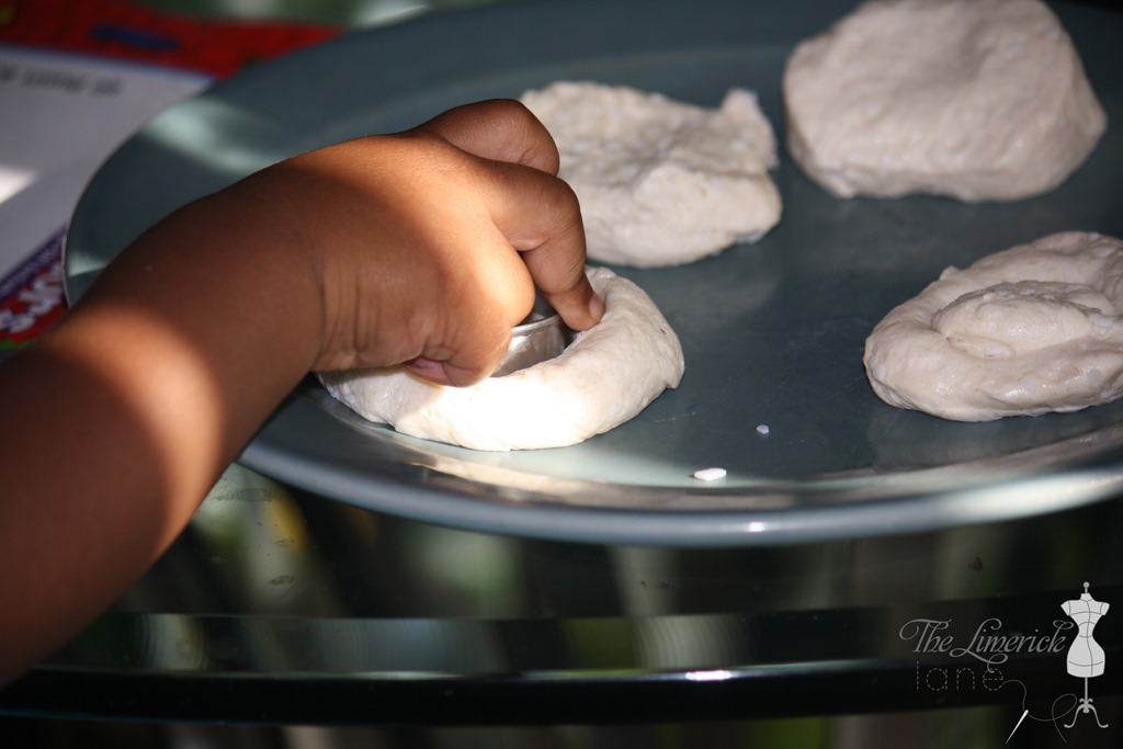 Sasha was hard at work cutting holes into the donuts. We only had one donut hole cutter so I kept Sydney busy with drawing.