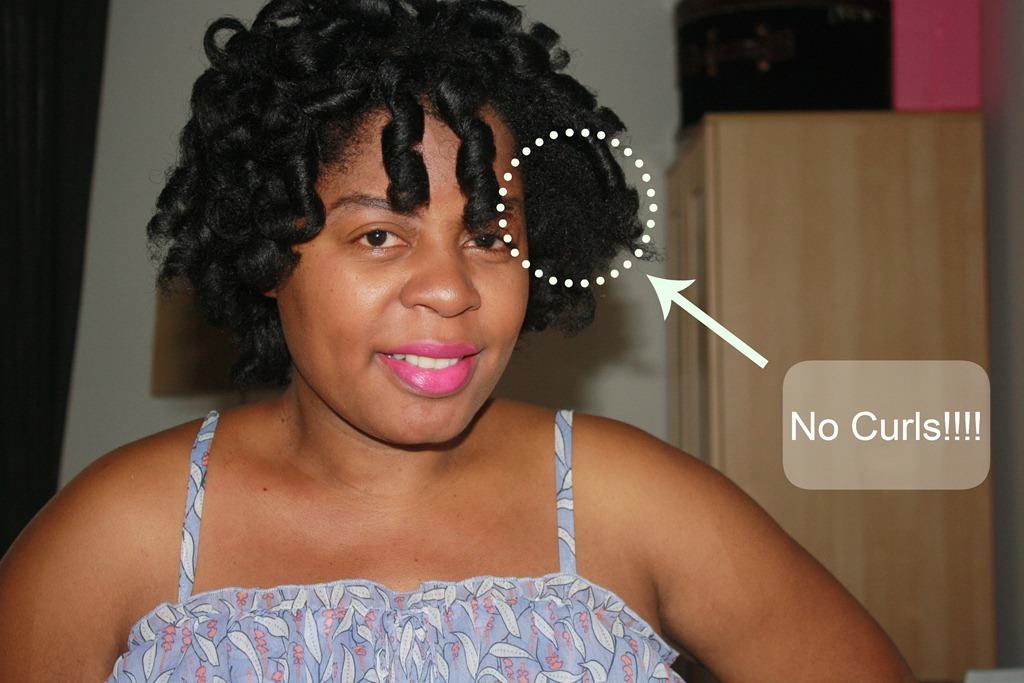 Here is the final result of my 1st attempt at Curlformers. I was in a hurry the day I attempted my Curlformers and sat under my Dominican Hair dryer to speed up the process. It took about 30 minutes to dry. But because of where my dryer is positioned in my bedroom (behind my head board) and the way I was sitting, two sections of Curlformers didn’t dry. Two little funky rollers didn’t dry and messed up my whole look because they were in a prominent place in my head. Ugghhh!