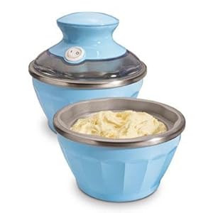 “With this ice cream maker, you can prepare two frozen treats faster than the ice cream truck can drive down the street. It’s easy — just add a few fresh ingredients, and in minutes, your taste buds will be rewarded.” I love this machine! Everything but the bowl and motor are dishwasher safe. It is small and does not take up much space on your counter or in the freezer. It makes a nice bowl of ice cream. I like that you can use your own ingredients and make it as healthy or unhealthy as you want!