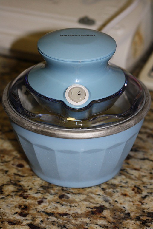 I purchased another gadget last week. I couldn’t help it. Who doesn’t want their own personal Ice Cream Maker? I was in Target looking for an ice tray and passed by the Hamilton Beach Soft Ice Cream Maker. For only $29, I couldn’t leave it in the store. What a bargain. I bought this small ice cream maker because it’s only me. This Hamilton Beach Half Pint Soft-Serve Ice Cream Maker makes fresh and creamy ice cream in 6 – 12 minutes. The ice cream maker is a compact size. Two small freezer bowls are included so you can make it and serve it right in the same bowl. Simply add fresh ingredients to the pre-frozen bowl, top the bowl with the motorized lid and press ON. Wait 6-12 minutes, remove lid and serve. It’s super easy and great for those that are on portion control diets!