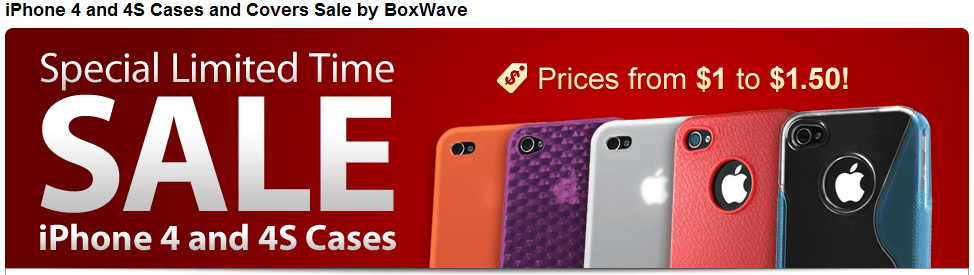 I was looking up a particular iPhone case today and discovered that the website who manufactures the case I wanted has other cases on sale for $1. That’s right, $1!!! So head over to Boxwave and get you a case between $1 and $1.50.