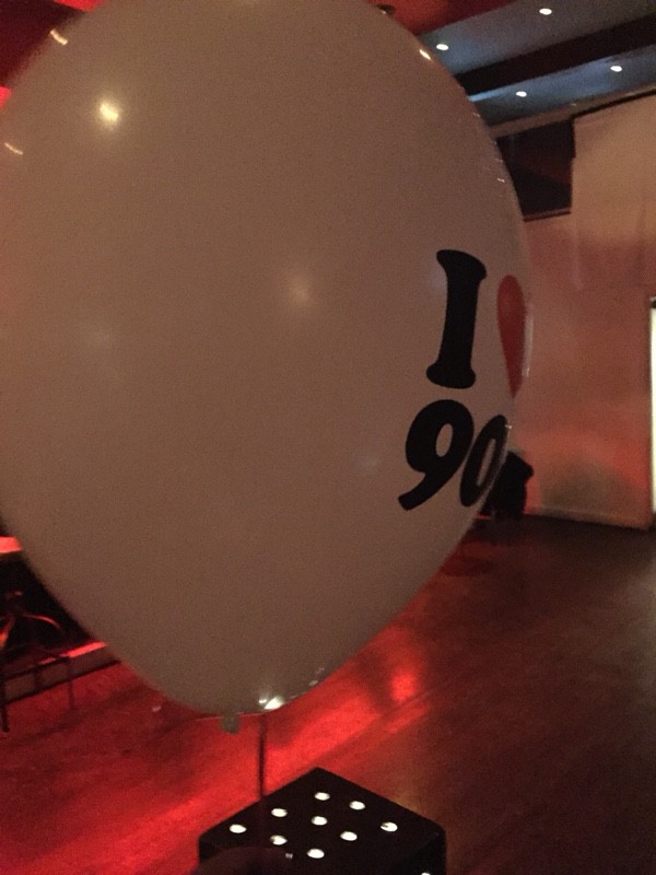 My friend loves her a themed party. From her annual Halloween party to the pajama jammy jam party. She loves a good excuse to wear a costume. The party was at small lounge in D.C. called Jin’s. It was the perfect spot. Great location and nice decor. We got there early to decorate a little bit. My friend found these cool “I heart the 90s” balloons and a blow up old school mobile phone.