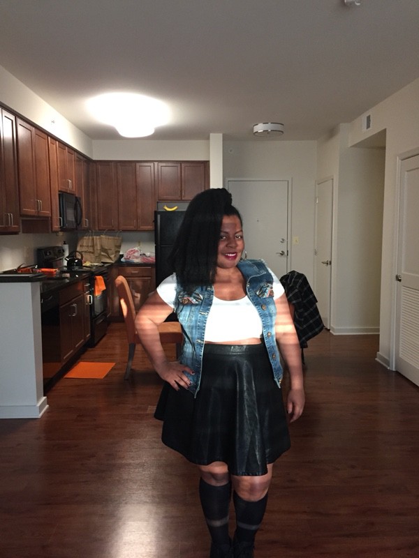 I really didn’t think long and hard about what I was going to wear for the 90s party. I didn’t want to buy anything new. So I whipped up my own version of a look from the movie ‘Clueless’ – minus the plaid. And I put some Marley braid hair in my head for a side pony tail.