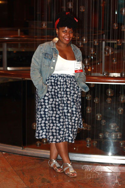 Here I am wearing my thrifted skirt. I had a chance to wear it the BlogHer 2012 ConferenceI. (I still need to fill you guys in on that too…I’m so behind in blogging.) Did I mention that the majority of my skirts have pockets? I LOVE pockets!