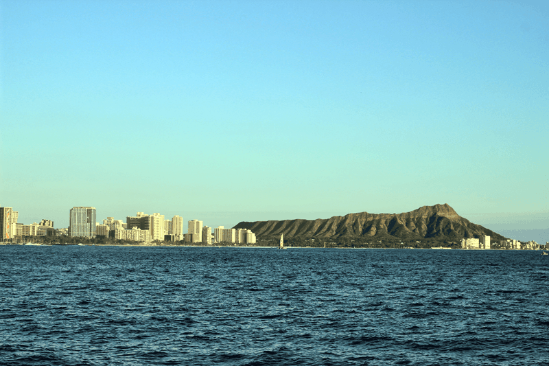 Later that evening I got to enjoy the beautiful sunset while dining at sea on the Navatek I. We sailed along Waikiki Beach past Diamond Head to the shores of Khala Coastline – where Hawaii’s rich folks live. We were able to get spectacular views of the shoreline from anywhere on the boat. We paid a little extra for the window seat, but it was totally worth it. Since we booked the excursion via our hotel, we had shuttle service to the port. The sunset dinner buffet offered two styles of dinner. There was the prime rib buffet or you could pay more for the seafood option. Since I don’t eat seafood, we opted for the least expensive one. The buffet was delicious. It included one free cocktail per person and complimentary soft drinks.